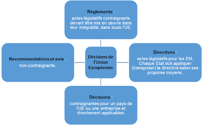 L’UE adopte différents types d'actes législatifs visant à atteindre les objectifs fixés. Certains s'appliquent à tous les pays de l'UE, d'autres uniquement à quelques-uns et le niveau de contrainte varie de l’obligation à la simple recommandation.